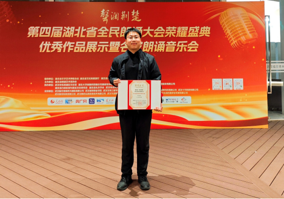 (通讯员:莫运晓)近日,第四届“声润荆楚”全民朗诵大会获奖名单揭晓。我校交旅学院李金良荣获高校组“银星奖”。本届大赛由湖北省文化和旅游厅指导、湖北省朗诵艺术家协会主办,旨在通过声音传递文化力量,弘扬中华经典,吸引了全省众多朗诵爱好者踊跃参与。