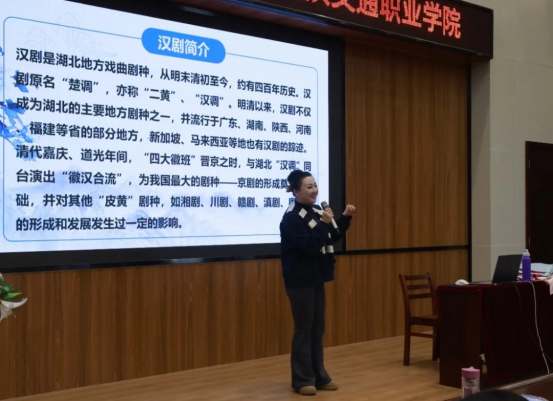 2025年戏曲进高校戏曲大师课活动走进了武汉交通职业学院,武汉市艺术创作研究中心副主任、梅花奖获得者、一级演员王荔以“汉剧之美”为主题,通过汉剧理论知识科普、戏曲角色解读并展示、与同学互动体验等方式,为武汉交通职业学院的老师和同学们来带了一节生动的大师课。
