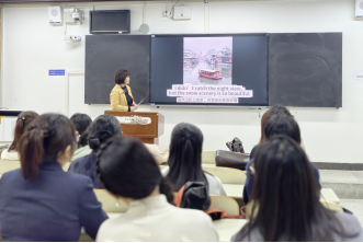 活动伊始,陈洁老师展示了学生提交的一系列精彩视频作业。这些视频作业围绕校园生活、家乡特色、假期生活等贴近学生实际且富有生活气息的话题展开,学生们充分发挥创意,拍摄出一个个原创英文短视频。从内容上看,作品丰富多样,有的聚焦校园社团活动的精彩瞬间,有的生动展现家乡独特的风土人情,还有的细腻记录假期旅行的难忘经历;在剪辑方面,学生们更是展现出一定的创意与技巧,画面精美、节奏流畅,令人眼前一亮。