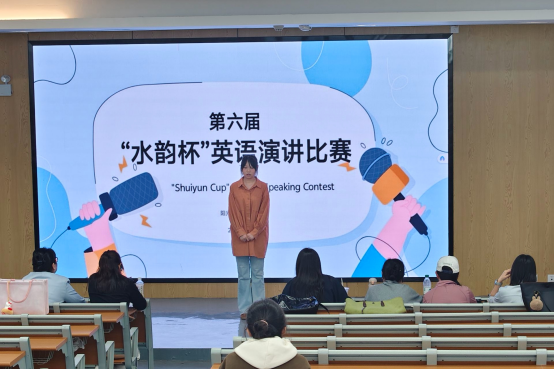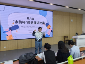 (通讯员:余姜玮)为进一步提升学生英语表达能力,拓宽国际视野, 4 月 10 日,由阳光英语俱乐部主办的第六届“水韵杯”大学生英语演讲比赛初赛在尚能楼顺利举办。本次比赛特邀多名专业教师担任评委,吸引了全校各学院的 82名选手参赛,近 100名师生到场观赛。